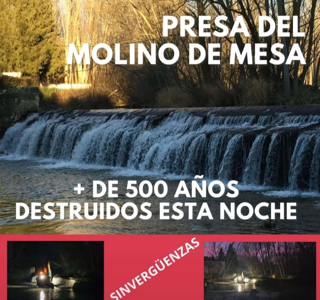 4 años de manifestaciones para evitar que derriben este Azud, que evita que troncos y mierdas, puedan llegar al puente de la carretera, que pasa un poco mas abajo, para que vengan a las 5 de la mañana, como ladrones y la derriben, estando todo en juicio, tela con el terrorismo político que tenemos aquí.