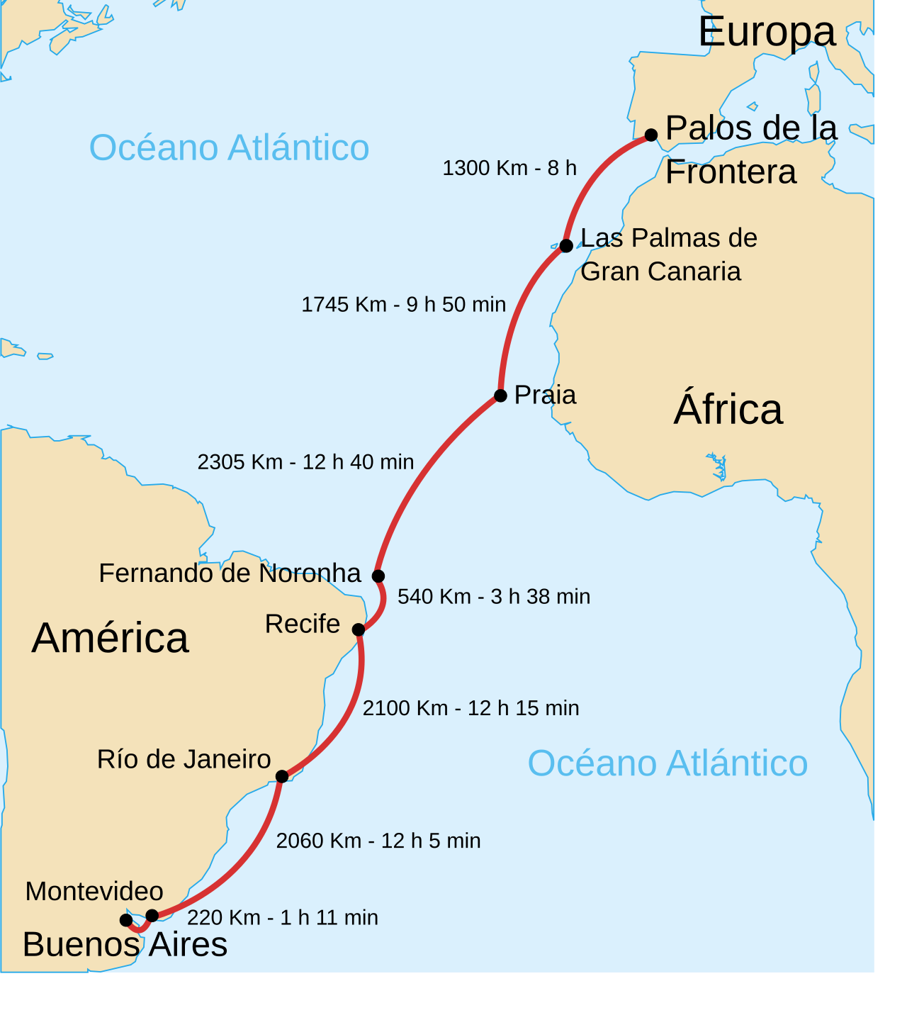 El vuelo que, desde el punto de vista técnico fue un éxito rotundo, tuvo un recorrido de 10270 km en 59 h y 30 min (a una velocidad promedio de 172 km/h) repartidos en las siguientes etapas: