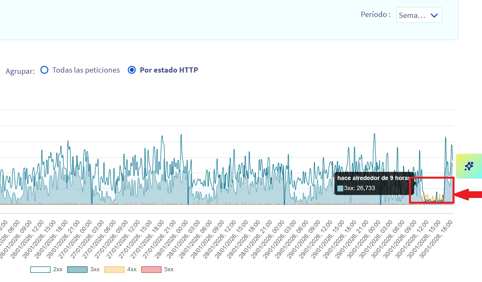 Desde las 11am hasta las 16pm de hoy, casi nadie pudo acceder a la web, registrando un mínimo de acceso al servicio. Por lo que no parece un ataque DDoS.
